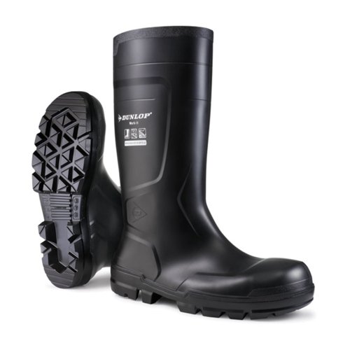 Practical safety boot for general use Lightweight modern design Steel toe cap Steel mid-sole Upper with Improved fit and support Easy to clean PVC material Highest SR-slip rating for excellent grip in multiple environments Energy absorbing heel design Oil resistant outsole with antistatic properties Ladder grip 100% waterproof protection EN ISO 20345:2022 S5 SR FO LG