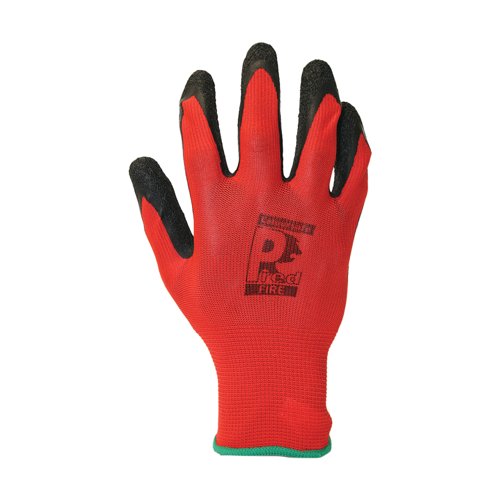 Pred Fire Work Gloves 1 Pair Red/Black 9 (Pack of 10) LCPL-RED-9. 13 Gauge red Polyester Liner with a black crinkle latex palm coating - Sizes 6 (XS) - 11 (XXL).. Supplied as 1 pair.