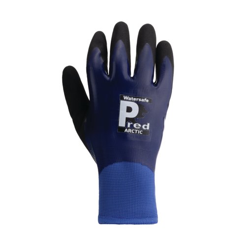 - Pred Arctic Watersafe Thermal Gloves have a blue polyester outer liner with a HPPE and steel inner liner, fully coated in smooth nitrile, finished in sandy nitrile coating. The gloves are waterproof to the wrist and have a coloured cuff size indicator. Supplied as 1 pair.