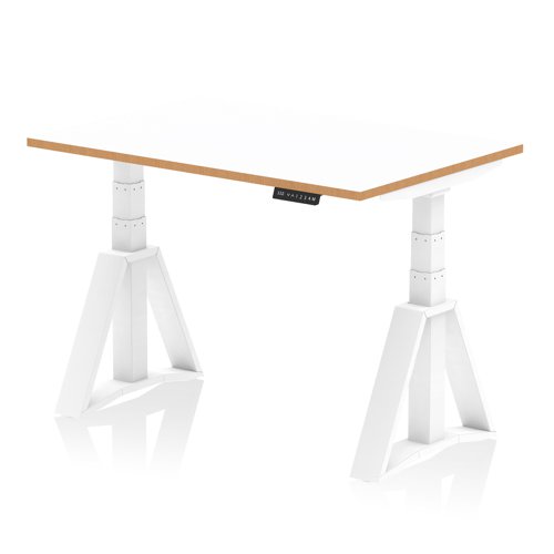 Oslo 1200mm Height Adjustable Office Desk White Top Natural Wood Edge White Frame with Piste Foot